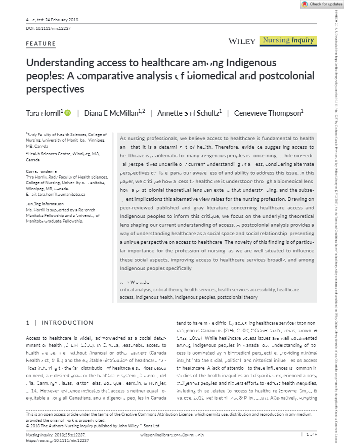 Understanding access to healthcare among Indigenous peoples: A comparative analysis of biomedical and postcolonial perspectives.