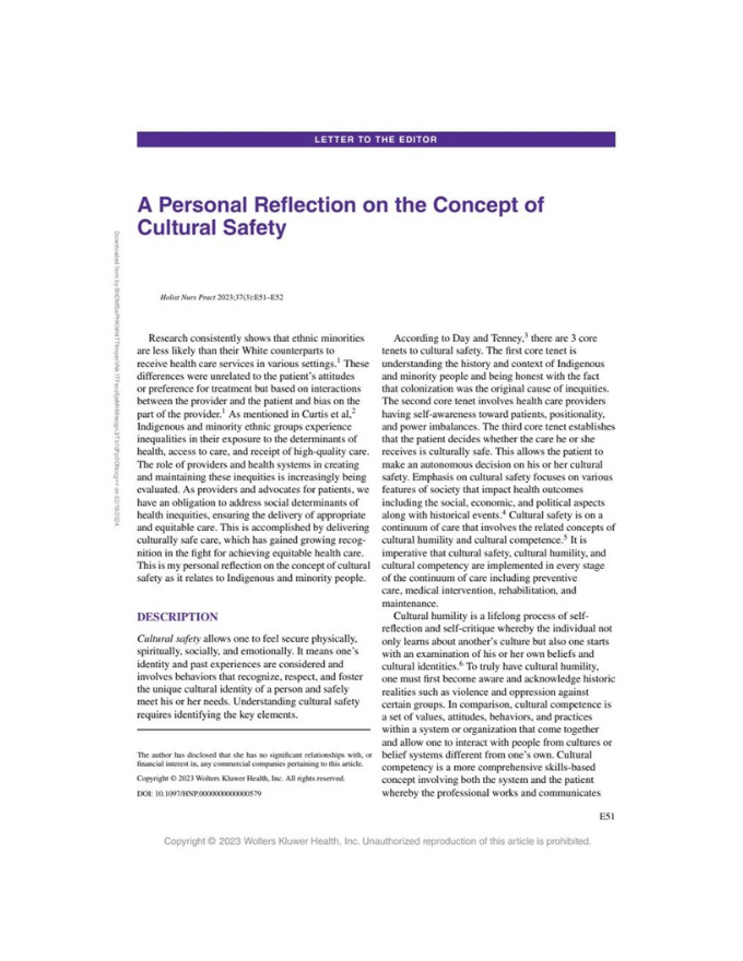 L’auteur entreprend une autoréflexion sur le concept de sécurité culturelle et son application dans le contexte des peuples autochtones et minoritaires.